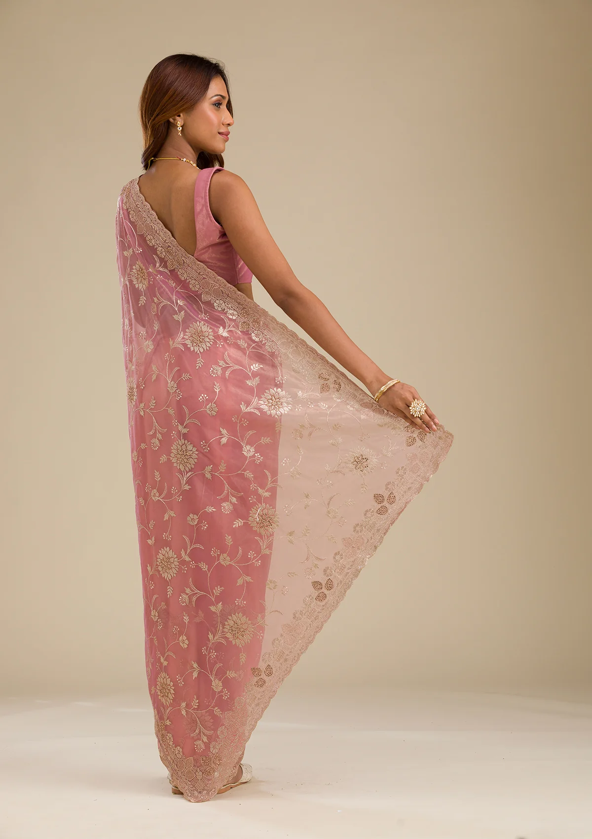 Pink Zariwork Tissue Saree