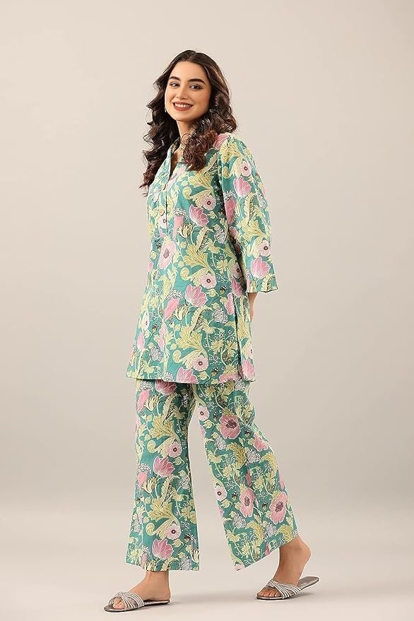 Women's Cotton Blend Printed Ethnic Co-ord Set